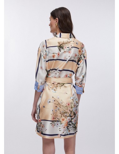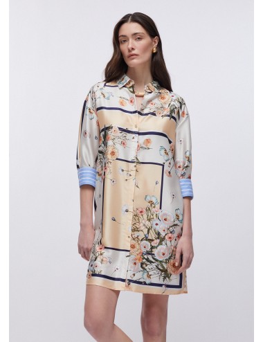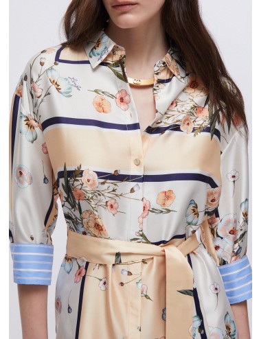 Fiori delicati, righe grafiche, colori calibrati: questo abito in twill ha l’eleganza di chemisier e la facilità di un capo da indossare subito. Da indossare con disinvoltura dalla mattina in ufficio al dopo cena con le amiche.
