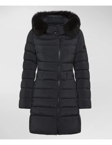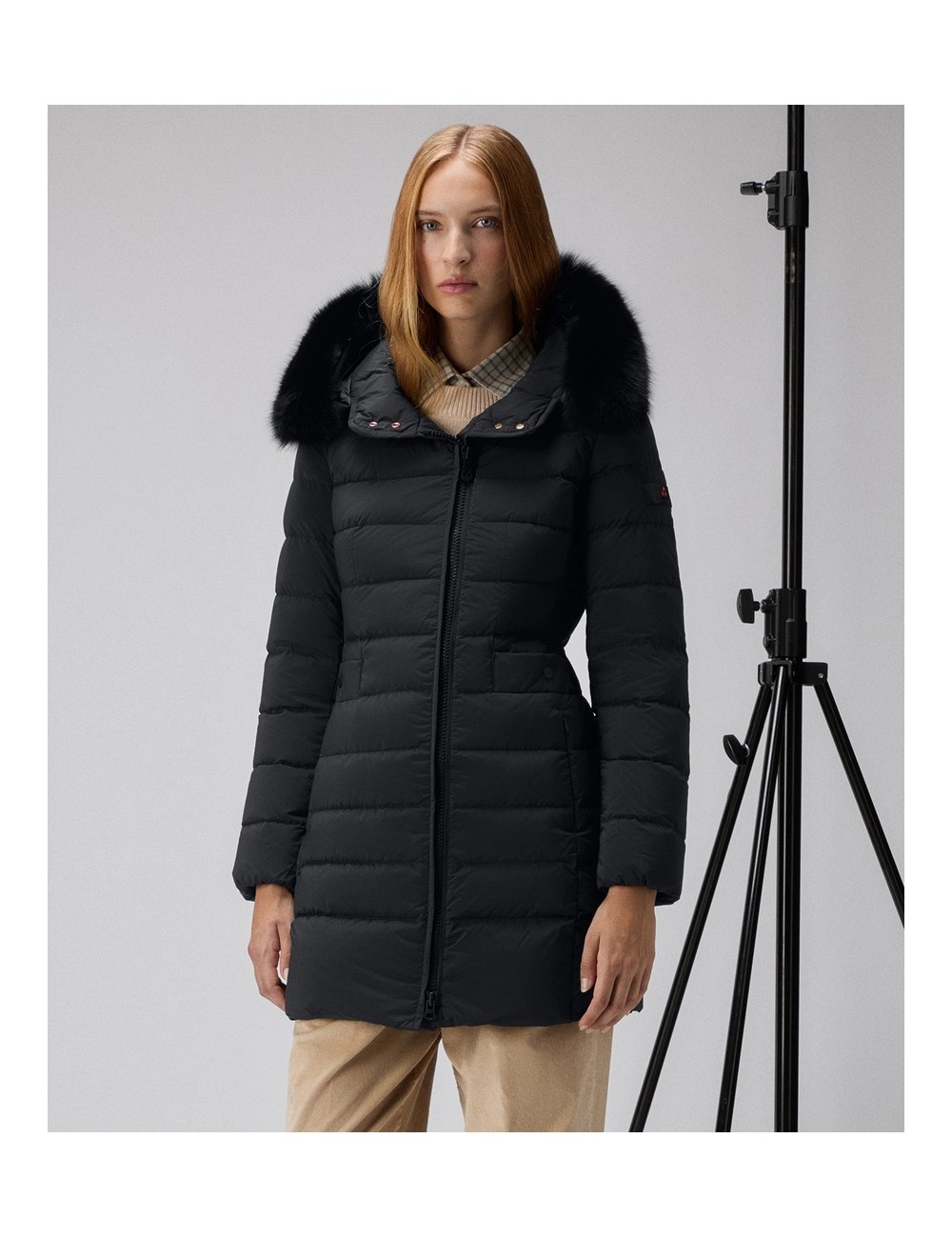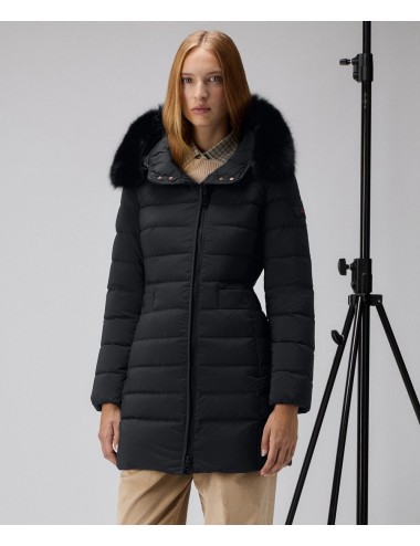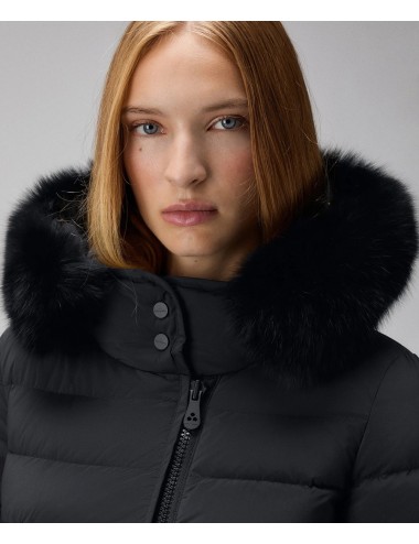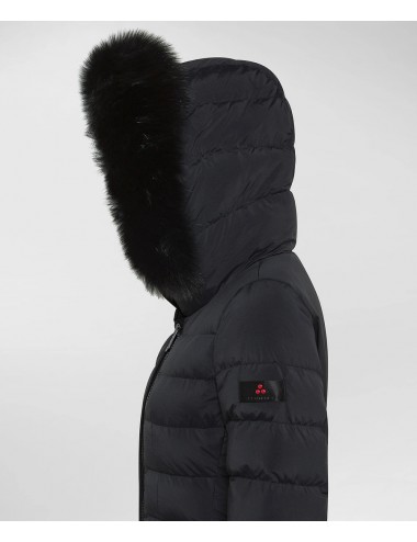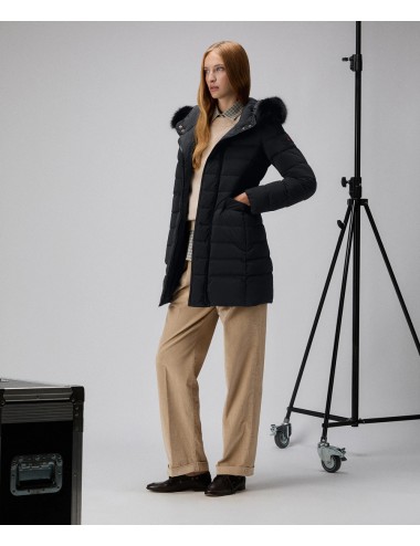 Piumino in tessuto tecnico leggero, polveroso al tatto per la temperatura di tintura e idrorepellente. Il capo è impreziosito da un bordo staccabile in pelliccia di volpe a contorno del cappuccio a collo alto. La vestibilità asciutta, sottolineata dalla coulisse posteriore in vita e dall’alternanza di trapuntate più e meno sottili, valorizza la silhouette e dona una connotazione femminile al capo. Chiusura con zip asimmetrica a doppio cursore, tasche con zip, inserti elastici antivento ai polsi. Un capo facile da abbinare a look diversi, al passo con uno stile di vita dinamico!