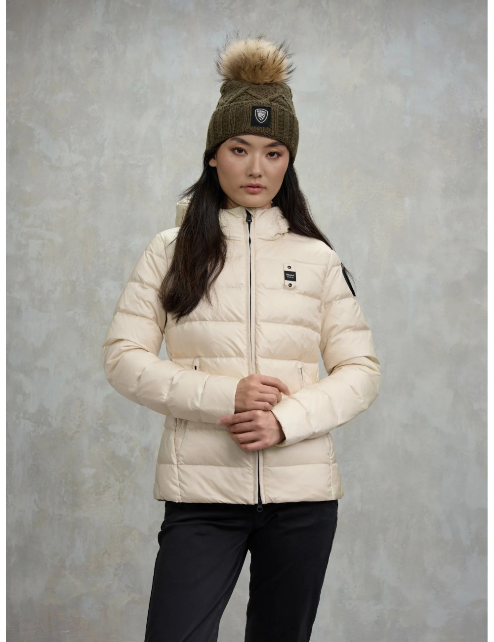 Piumino idrorepellente trapuntato a righe orizzontali. Capo con imbottitura leggera, calda e non ingombrante, dai colori fashion e dal taglio che risalta il punto vita.