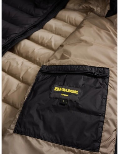 Piumino trapuntato a righe orizzontali. Capo iconico Blauer con imbottitura naturale in piuma, calda e non ingombrante; dedicato a chi vuole essere sempre alla moda in ogni occasione.