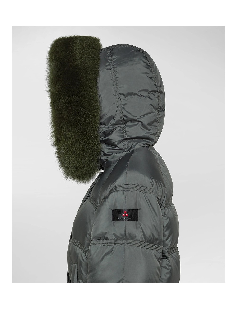 Puffer jacket ad ampie trapunte, in tessuto super-light in 100% poliestere riciclato da materiali post consumo, dalla mano morbida e dalla struttura super compatta. L’imbottitura in piuma d’oca certificata assicura calore elevato e leggerezza, mentre il trattamento idrorepellente PFC Free protegge senza l’uso di sostanze chimiche nocive. Di gusto urban sportswear, la shape ad A è regolabile grazie all’apertura delle zip laterali, mentre il cappuccio fisso è arricchito da un bordo in pelliccia di volpe staccabile in tono colore. Completano il modello le tasche a filetto, la chiusura con patta e bottoni che nasconde una zip a doppio cursore. Il modello, bestseller della collezione invernale di Peuterey, ora nei colori trend della stagione, può essere indossato anche in occasioni eleganti e mondane.