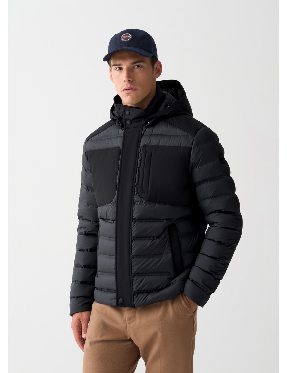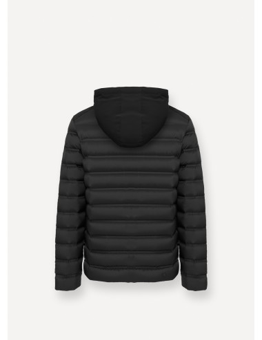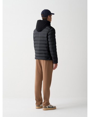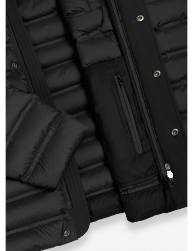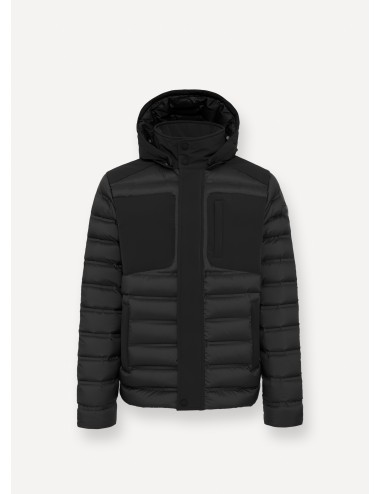 Gli inserti in tessuto liscio a tre strati si alternano alle trapuntature incollate, creando un mix di tecnicità e dinamismo. Il cappuccio staccabile permette di personalizzare il look, mentre le tasche laterali e quella sul petto aggiungono funzionalità. La coulisse sul fondo regola la vestibilità, garantendo comfort e praticità ideali per affrontare il freddo con stile.