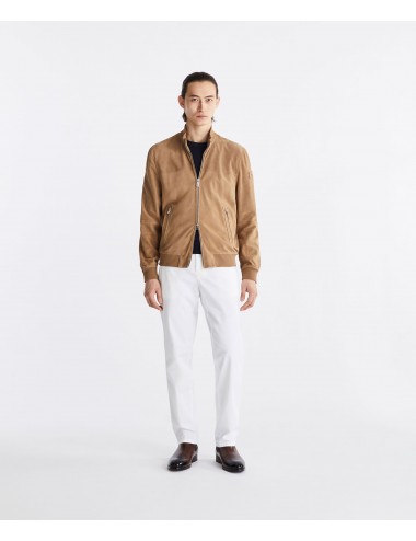 Giacca realizzata in morbida pelle scamosciata, un must-have iconico del guardaroba maschile. Caratterizzata da collo in piedi, tasche laterali con zip, chiusura centrale con zip metallica a doppio cursore, offre un design funzionale e raffinato. Polsini, fondo e collo in maglia elastica assicurano comfort e praticità. Un connubio di comfort, raffinatezza e tecnica, espressione dell’eccellenza e del know-how del brand.