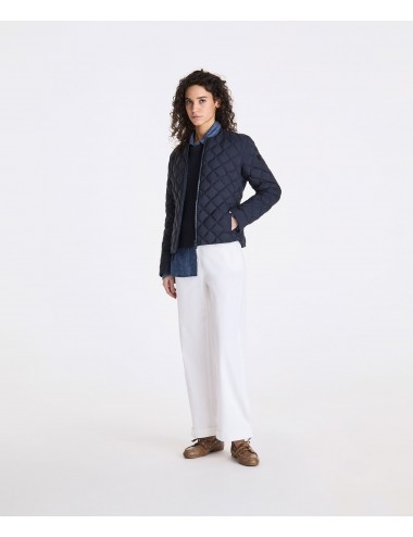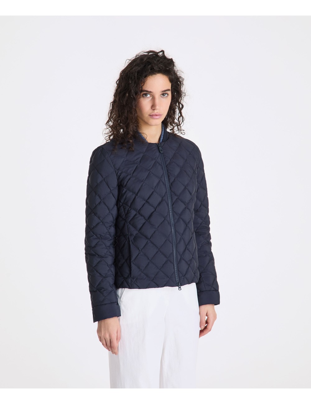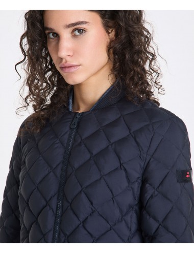 Piumino super leggero in nylon 20 denari, con texture stropicciata ed opaca. Imbottito in piuma naturale certificata, offre una vestibilità slim che esalta la silhouette femminile. Dotato di chiusura centrale in tono colore, tasche laterali e trapunta a rombi, questo modello unisce leggerezza e praticità, risultando ideale per affrontare il clima di mezza stagione con stile. Idrorepellente con trattamento PFC free che non utilizza sostanze nocive per l’ambiente, è il capo perfetto per un’eleganza prêt-à-porter che non rinuncia al comfort.