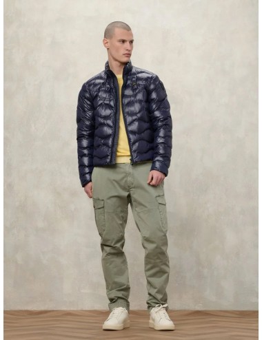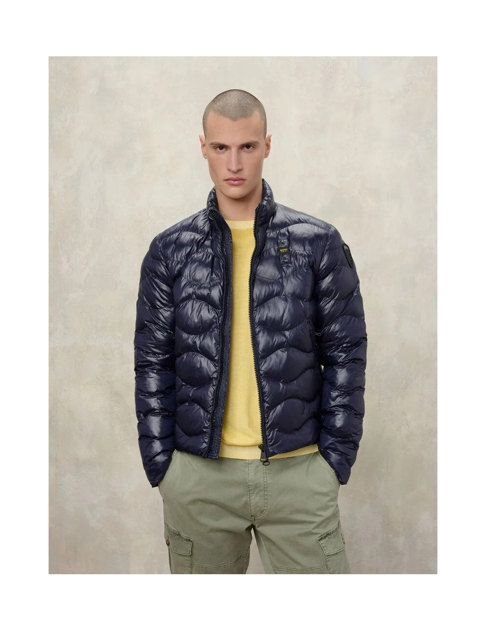 Giubbetto con leggero motivo check, imbottitura sostenibile impunturata ad onde. Fettuccia a spina di pesce in tono per nascondere le zip e donare un effetto armonico e pulito.