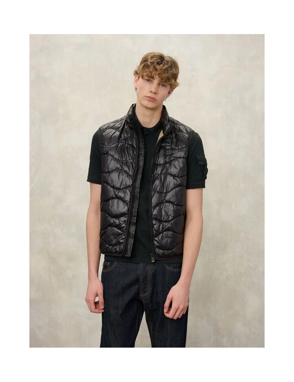 Giubbetto senza maniche con leggero motivo check, imbottitura sostenibile impunturata ad onde e fodera in contrasto colore