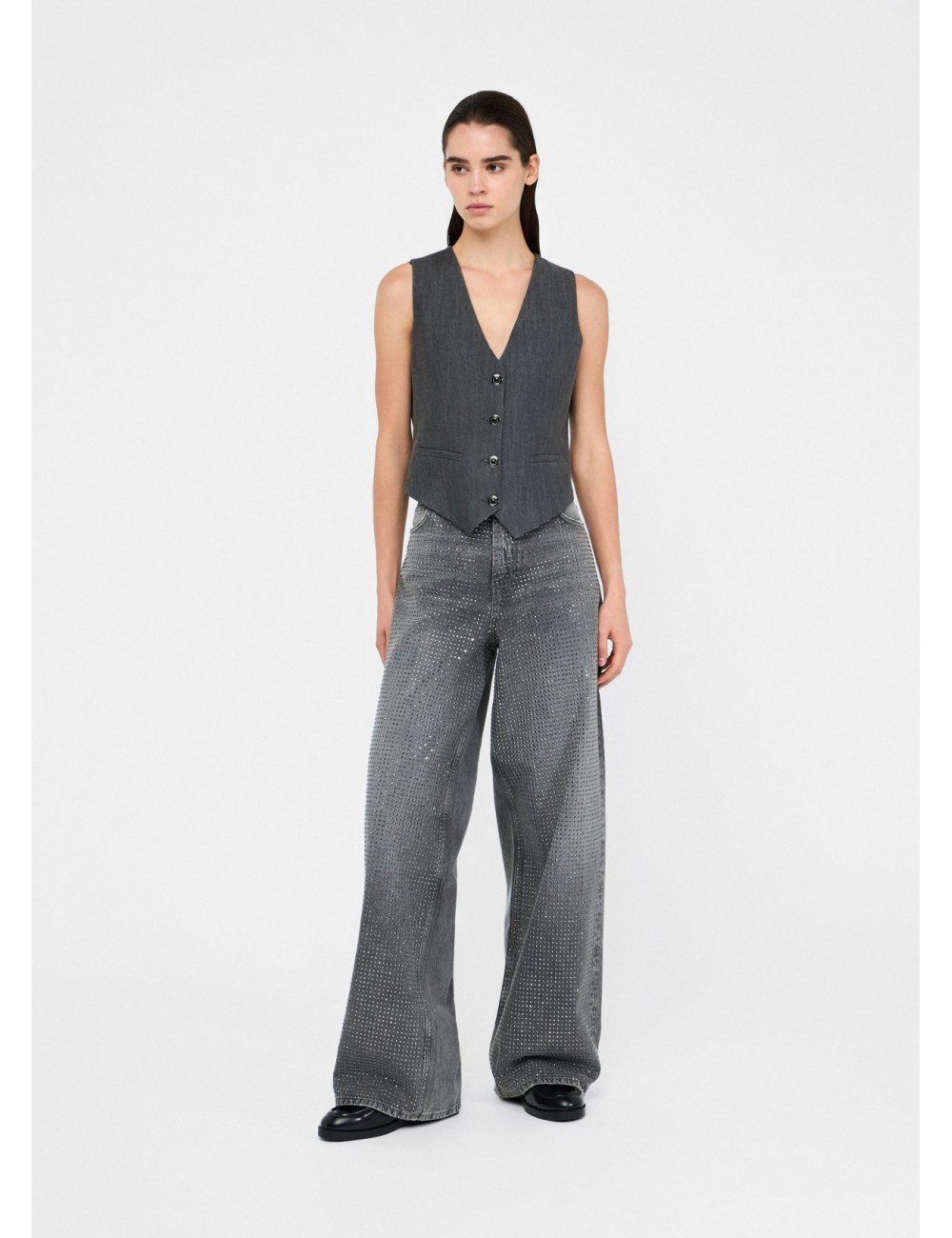 UF5095 JEANS BAGGY CON BORCHIE LIU JO DONNA PANTALONE PANTALONI DENIM GRIGIO
