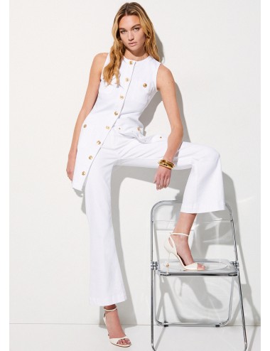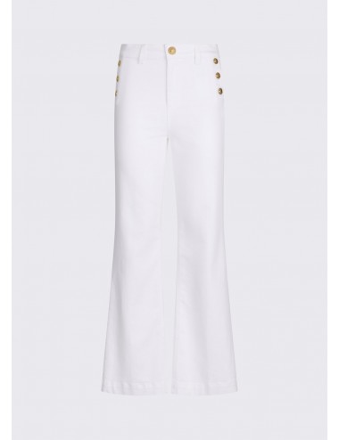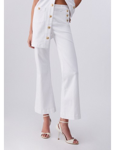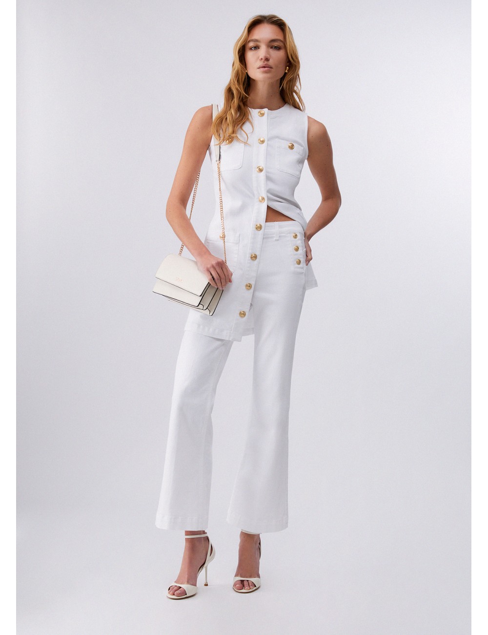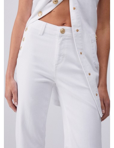 Tela stretch in drill di cotone per questi pantaloni a vita alta, proposti in total white per illuminare i tuoi look. Le tasche sono impreziosite da bottoni dalla galvanica golden, che li rendono perfetti per appuntamenti daily ed eventi serali.