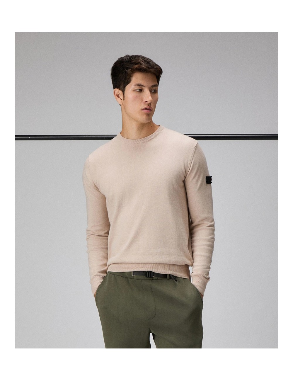 Maglione girocollo in tricot misto lana e cotone, dalla texture morbida e compatta. Il design essenziale è valorizzato da dettagli raffinati come il collo, i polsini e il fondo lavorati a coste. Sul braccio sinistro è applicata con due delicati bottoncini la personalizzazione con logo Peuterey trilogy, simbolo iconico del brand. Modello tinta unita disponibile in vari colori. Un capo versatile che si adatta con naturalezza a look casual come a combinazioni più ricercate, perfetto per definire uno stile contemporaneo e disinvolto.