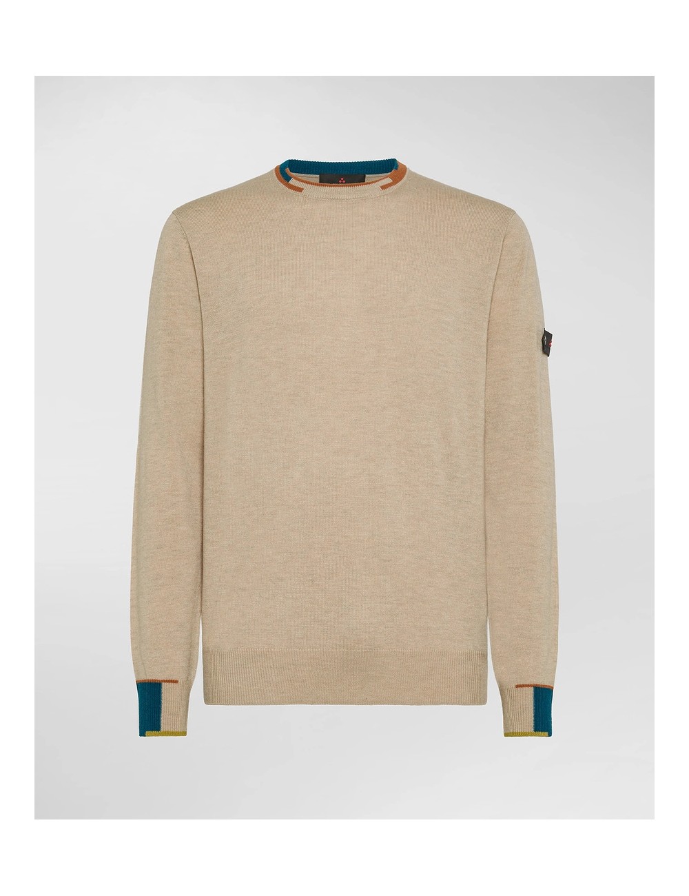 Maglia girocollo in tricot di misto lana e nylon, caratterizzata da dettagli a contrasto su collo, polsini e fondo che ne esaltano il carattere contemporaneo. La costruzione pulita e la palette raffinata la rendono un capo versatile, perfetto per aggiungere un tocco di personalità ai look quotidiani. La personalizzazione con l’iconico logo Peuterey, applicata sulla manica sinistra, completa il design con un tocco distintivo.