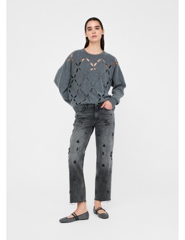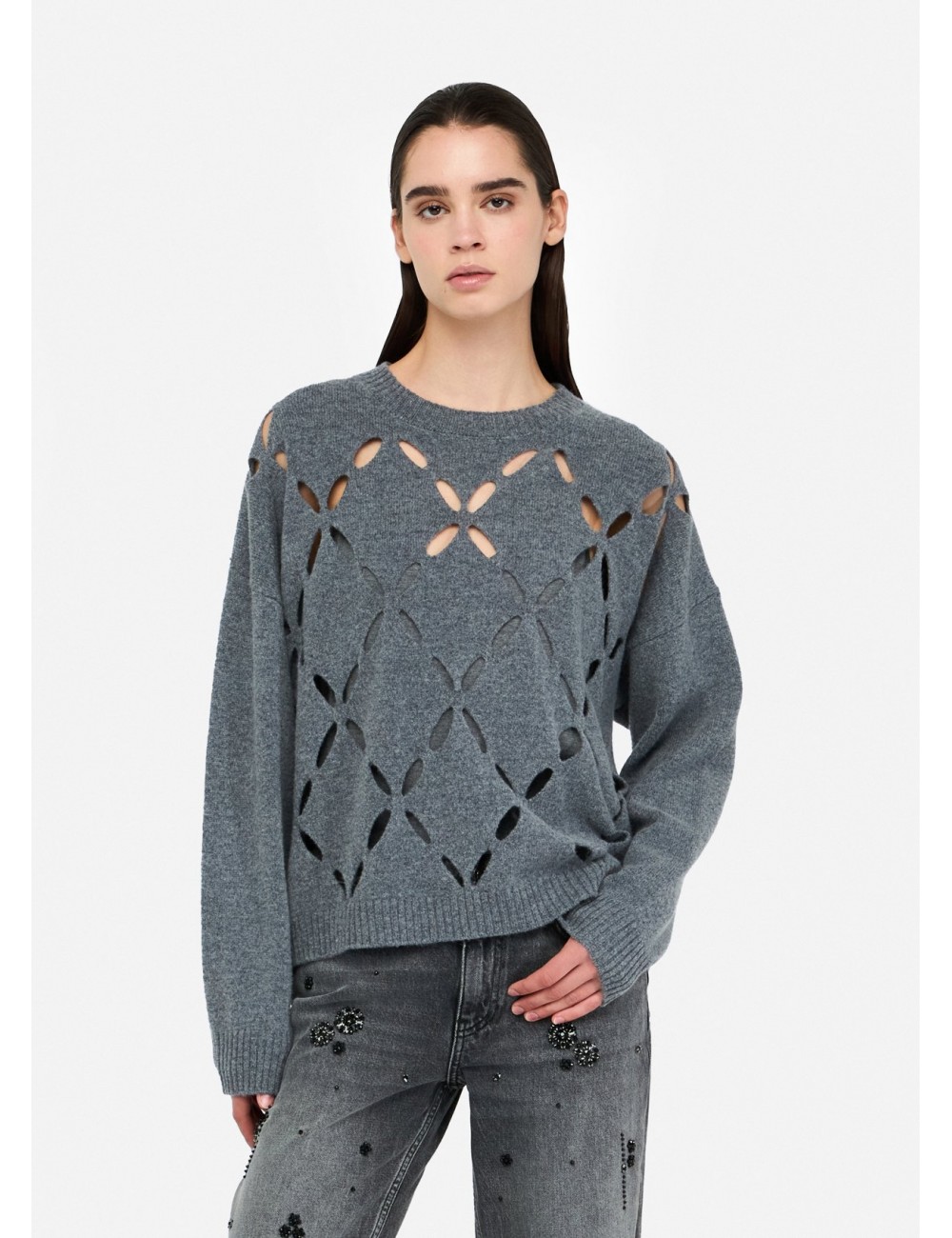 Un delicato disegno geometrico di losanghe dona leggerezza e trasparenza al capo. La sua trama ariosa e sofisticata è impreziosita da ricami gioiello per aggiungere un tocco glam ai tuoi look quotidiani.