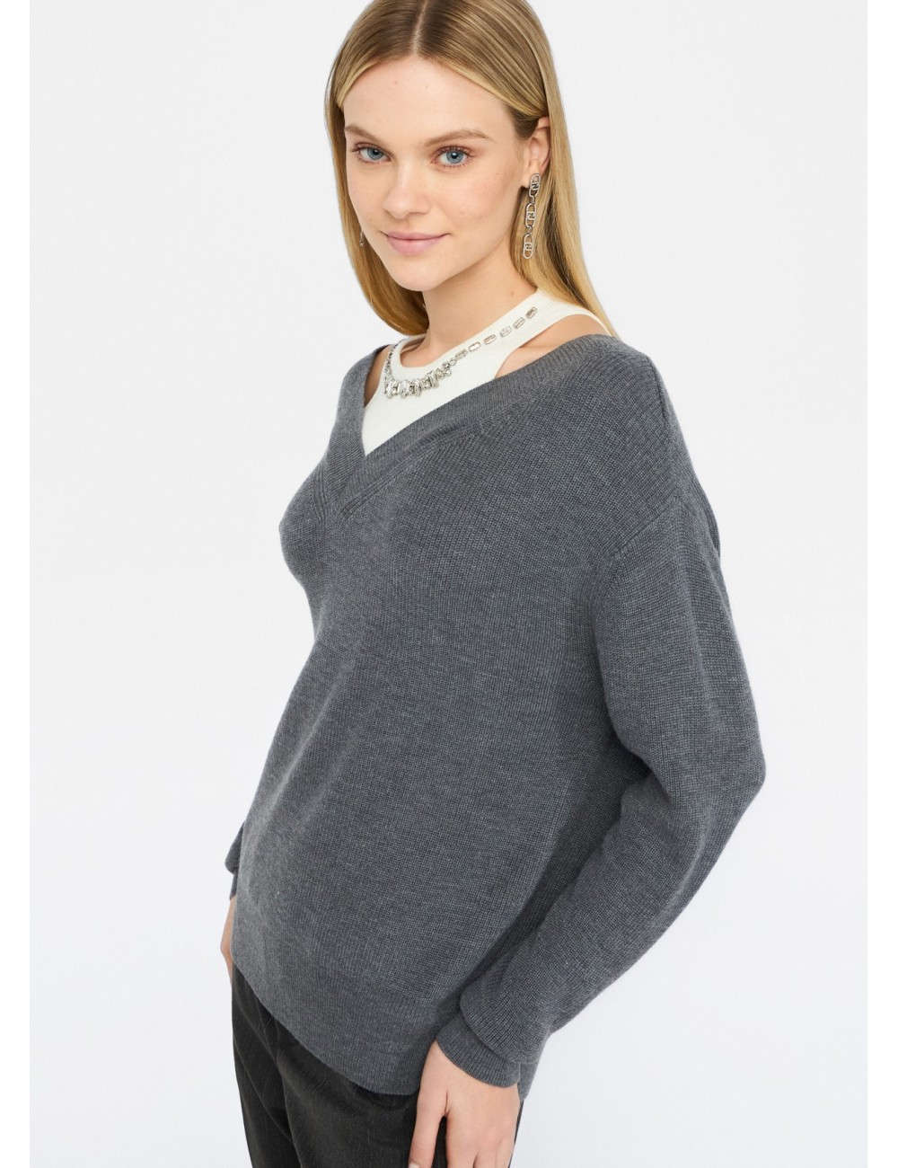 • Maglia grigia con filati in misto lana