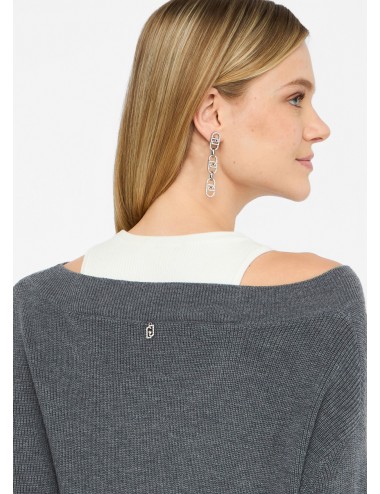 MF5126 MAGLIA LIU JO DONNA MAGLIONE RICAMO GIOIELLI MAGLIONCINO FINTA CANOTTA