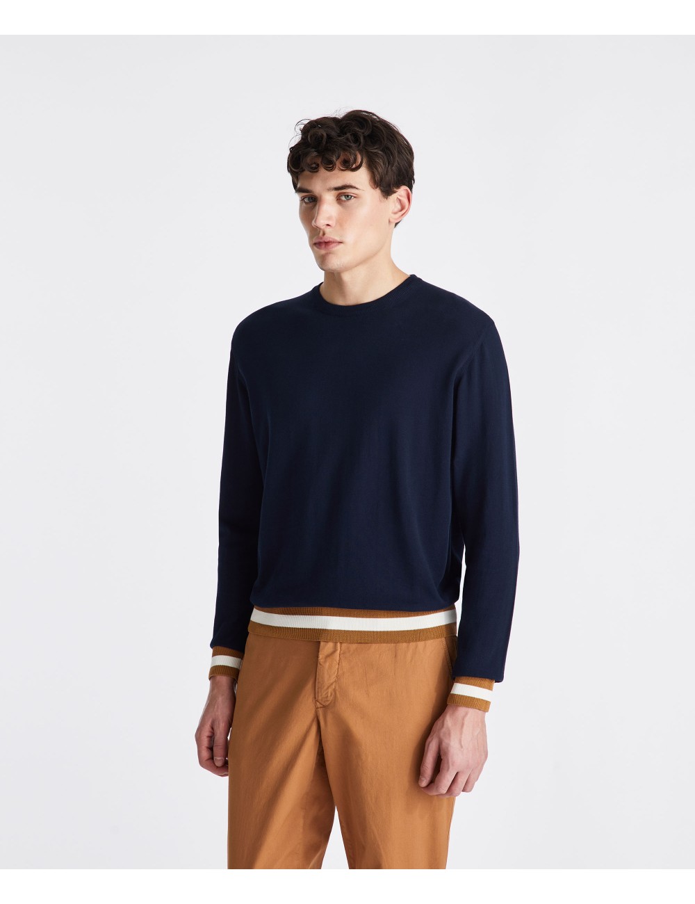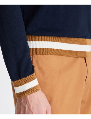 Maglia paricollo realizzata in tricot di cotone, dalla vestibilità regular. Caratterizzata da maniche lunghe, polsini e fondo a costine in contrasto colore, offre un design moderno e dinamico. La personalizzazione con etichetta affrancata su manica sinistra con due bottoncini aggiunge un dettaglio distintivo. Una maglia leggera, perfetta per mille occasioni e abbinamenti.