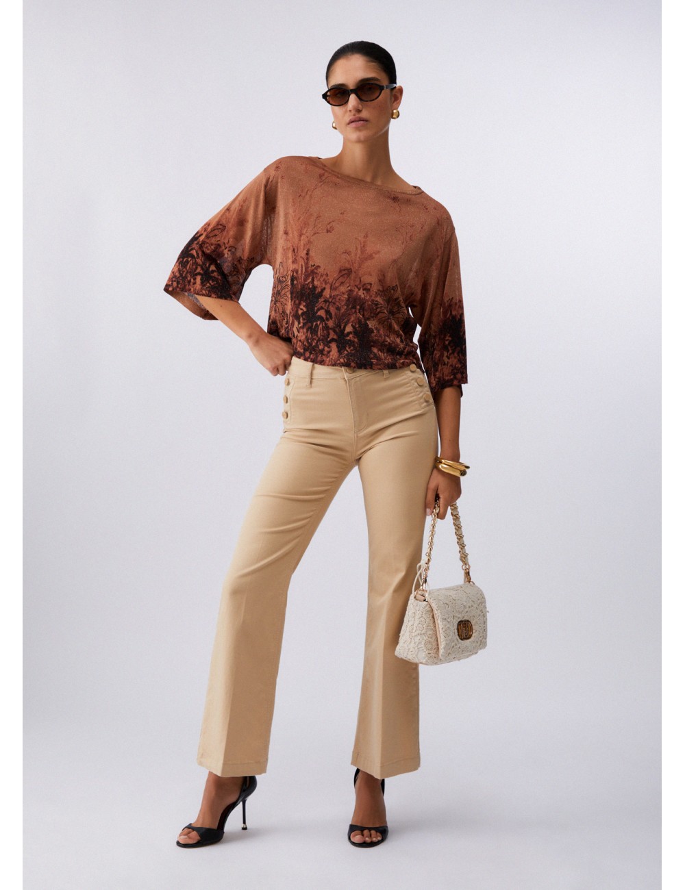 WA6403 41208 PANTALONE FLARE LIU JO DONNA PANTALONI ZAMPA WOMAN BOTTONI LOGATI