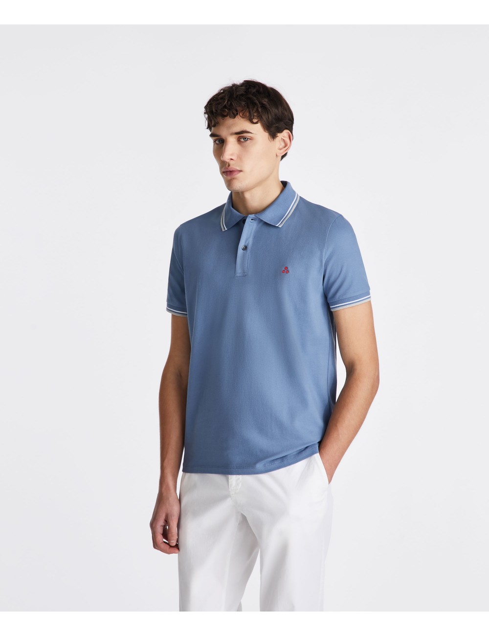 Polo realizzata in piqué di cotone stretch, morbida al tatto e confortevole, con colletto classico, maniche corte e logo ricamato al petto. Un modello intramontabile, perfetto per un look casual raffinato. I dettagli brillanti aggiungono un tocco distintivo, rendendo questo capo unico e capace di farsi notare.