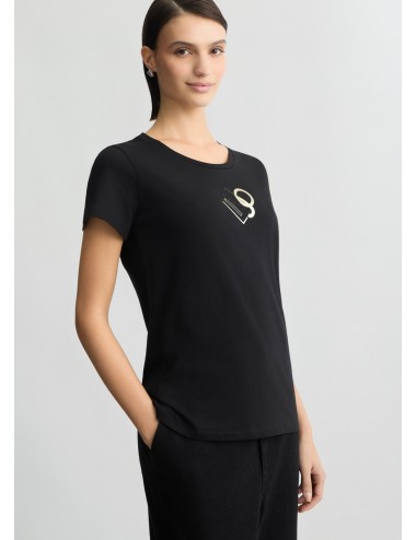 Capo statement da abbinare a tutti i tuoi bottom, questa t-shirt nera sarà la protagonista di look quotidiani e non solo. Realizzata in jersey di cotone, svela accenti glam con un maxi logo astratto e gli strass applicati sul davanti. Con pantaloni palazzo o jogging in felpa, dai voce al tuo stile Liu Jo.