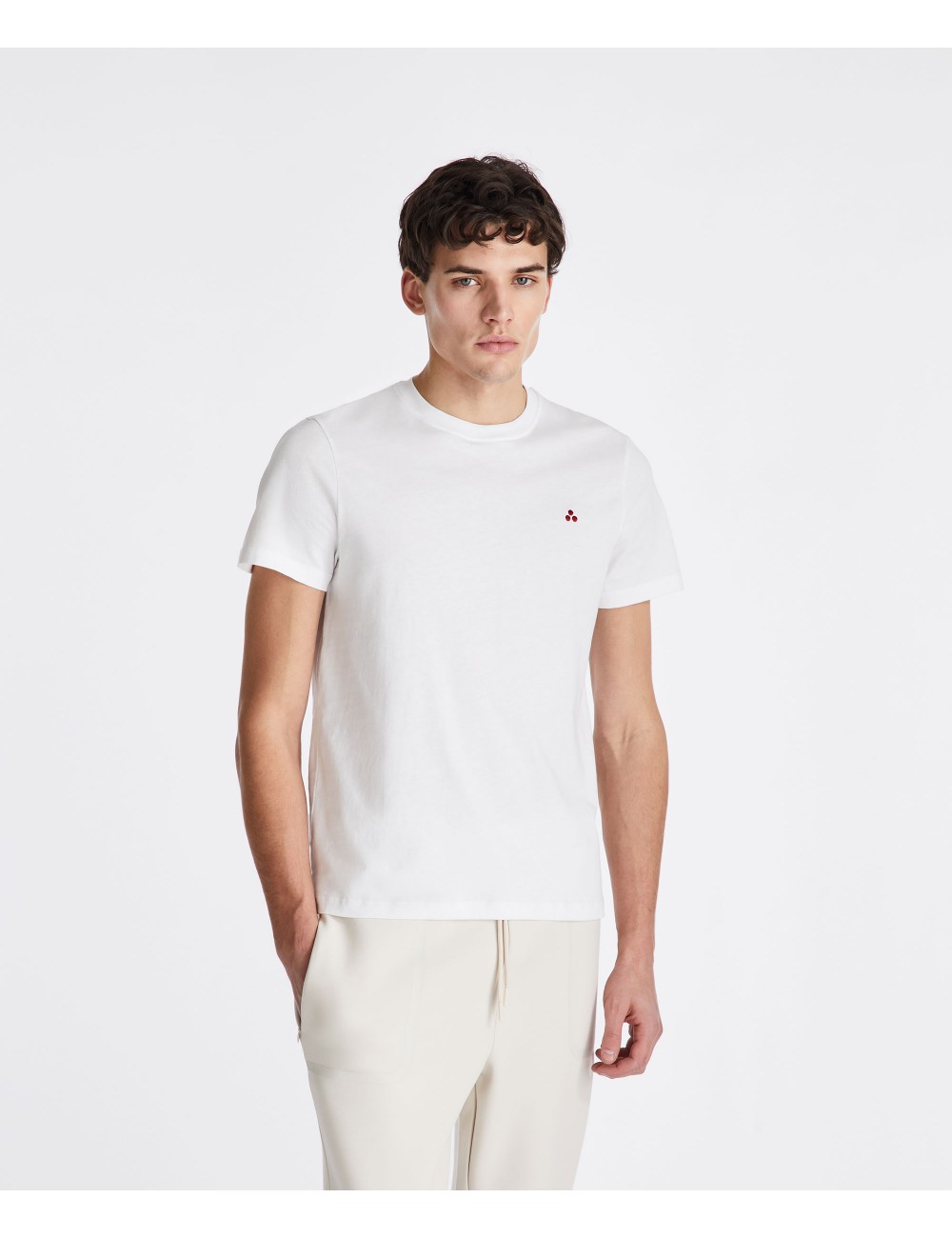 T-shirt realizzata in cotone, con logo ricamato al fondo e vestibilità regular. Un capo basic e indispensabile per il guardaroba estivo, ideale per creare abbinamenti che spaziano tra look formali, casual o sportivi. Perfetta da essere indossata sempre, garantisce comfort e stile per tutto il giorno.
