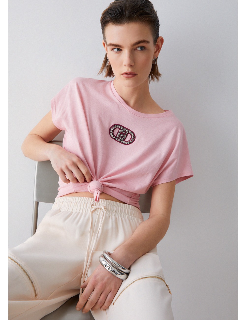 Liujo TA5187 M9285 T SHIRT DONNA LIU JO SCOLLO A V CON STRASS POLO WOMAN MAGLIETTA 69,00 € -40% 41,40 € T-shirt in cotone con strass