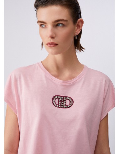 Liujo TA5176 22222 T SHIRT DONNA LIU JO JERSY DI COTONE MAGLIA MAGLIETTA WOMAN STRASS 69,00 € -40% 41,40 € T-shirt in jersey di cotone